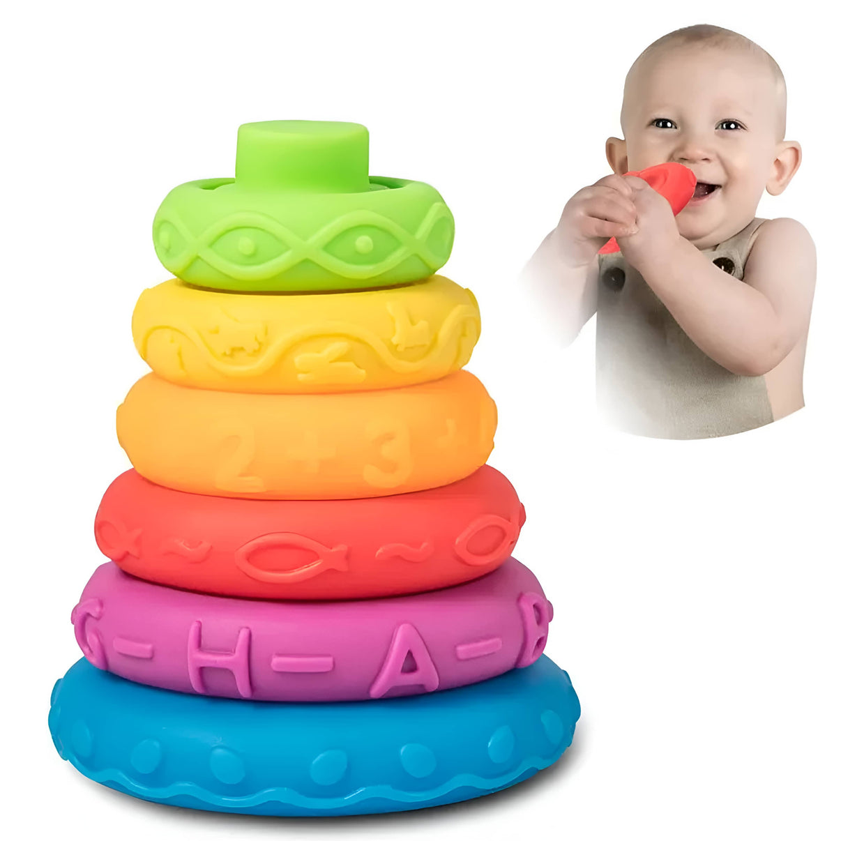 La torre de arcoíris apilable es un juguete sensorial diseñado para que los más pequeños exploren, aprendan y se diviertan mientras desarrollan sus habilidades. Con piezas de silicona suave y colores atractivos, se convierte en el compañero ideal para el juego libre y educativo.