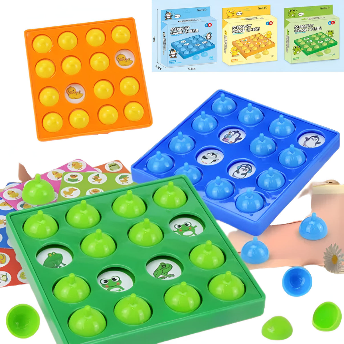 ¡Pon a prueba tu mente con el Mini Memorice! Este compacto y colorido juego es una versión fantástica del clásico Memory Game, diseñado para que la diversión y el entrenamiento cerebral te acompañen a todas partes. El objetivo es simple: levantar las tapas de colores y encontrar los pares de imágenes escondidas (patos, pingüinos, ranas, etc.).