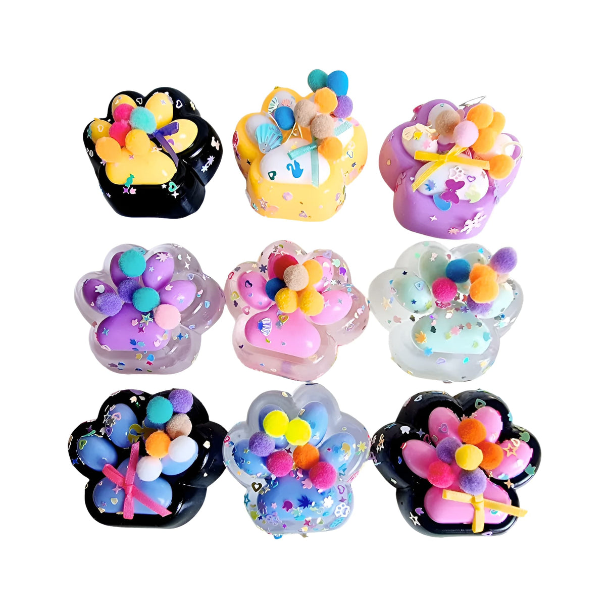 ¡No podrás resistirte a apretar esta adorable Squishy Pata de Gato Sensorial! Diseñada con la forma de una pata de gato con sus suaves almohadillas, esta squishy tiene un cuerpo gelatinoso relleno de pompones de colores y brillo. Al apretarla, sentirás una textura única y verás cómo su contenido se mueve, ¡un deleite para la vista y el tacto!